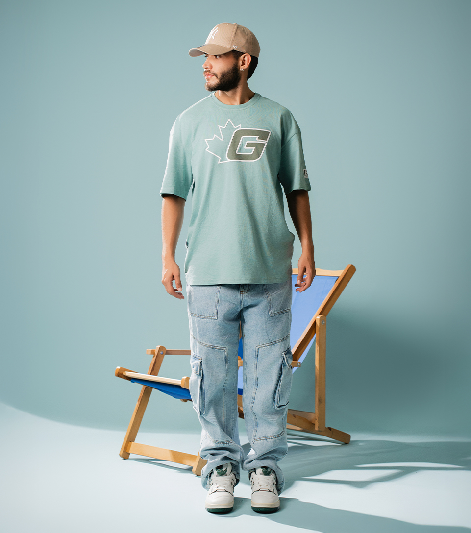 La camiseta oversize verde de Groggy y el jean cargo de Typer se complementan perfectamente para un look relajado y auténtico. La gorra 47 New York Yankees en caqui y los tenis New Balance añaden el toque urbano ideal para destacarte con estilo en cada paso.
