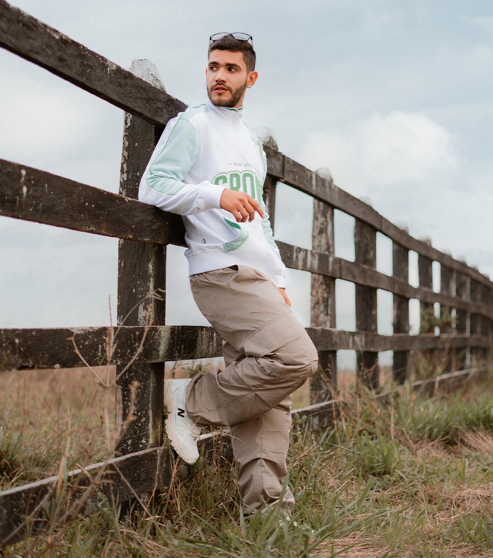 Aventúrate con un hoodie Groggy, joggers cargo Typer y tenis New Balance. Un look casual con actitud para cualquier jornada de exploración.