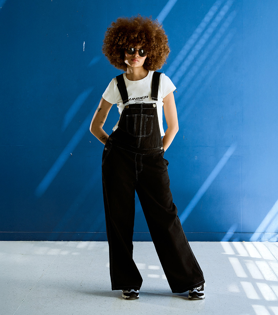 Retro Black Essence es un look con esencia noventera y estilo urbano atemporal. Las gafas Ray-Ban Jack y la camiseta UNSER marcan el inicio de una vibra clásica y casual. El overol TYPER y los tenis Skechers D Lites Smooth Nostalgia cierran este outfit con personalidad y estilo único.