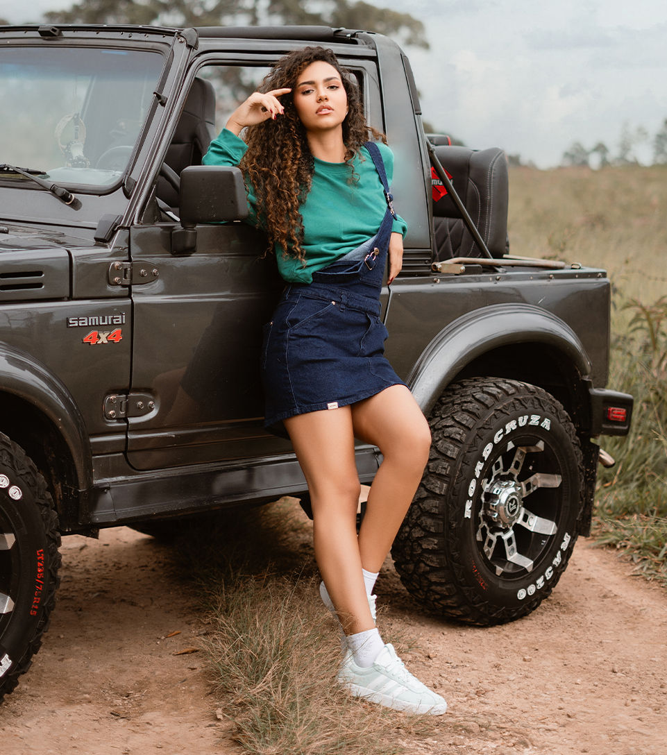 Combina estilo y funcionalidad con hoodie Typer y un overall corto Unser. Tenis Adidas completan el look para explorar con actitud.