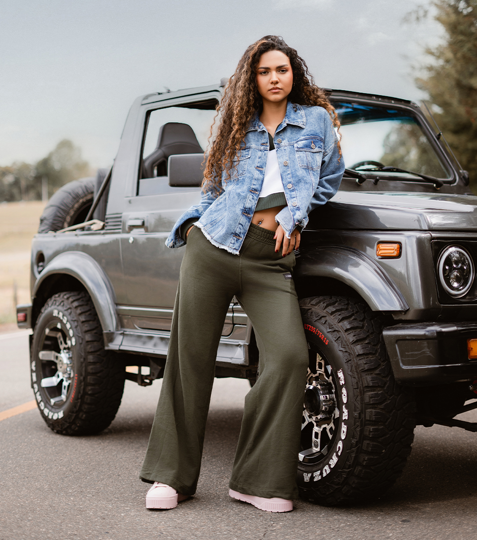 Domina la carretera con un look casual y chic. Chaqueta de Typer y pantalones anchos cargo se combinan con sneakers de Puma para recorrer kilómetros con comodidad y estilo. ¡El look ideal para tus aventuras!