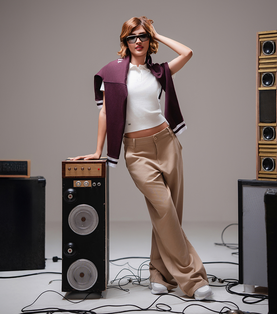 El Tempo Culture fusiona suavidad y carácter con la blusa Abby tejida y el camibuzo Zary oversize, creando un contraste entre textura y movimiento. El pantalón Andreina wide leg aporta fluidez y elegancia urbana, mientras las gafas Monastery y los sneakers Nora Groggy completan un look con ritmo propio y estilo sin esfuerzo.