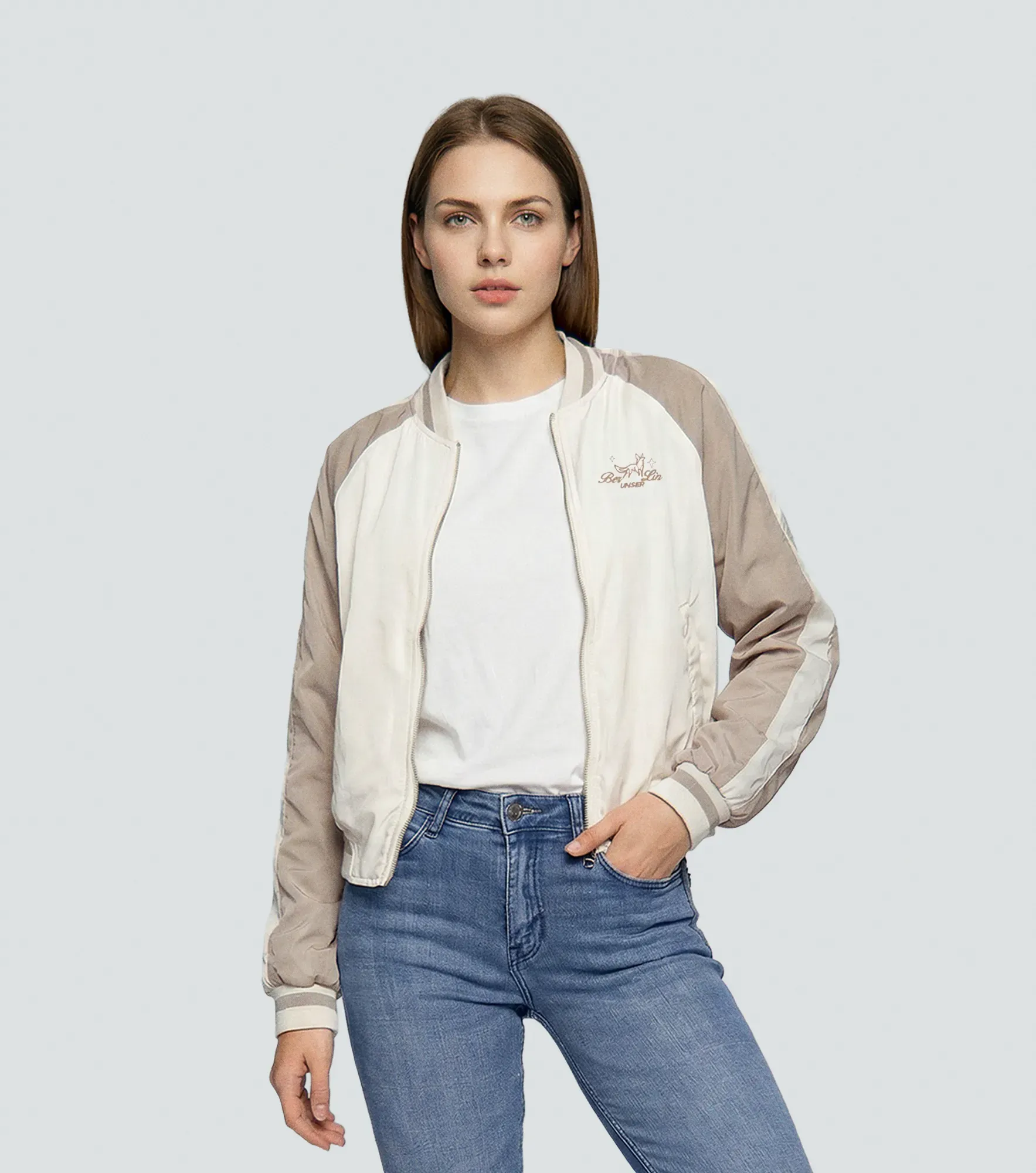 Este look tiene una estética minimal deportiva con inspiración académica suave, combinando gorra casual, bomber ligera, vestido polo y sneakers tonos claros para un look femenino limpio, cómodo y con una vibra relajada pero pulida.